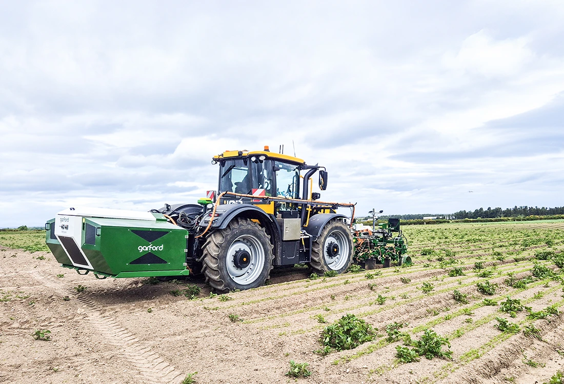 Um auch in Hackfrüchten den Pflanzenschutmittelaufwand weiter zu reduzieren, bietet der Hacktechnik-Experte Garford jetzt eine Bandspritze mit Fronttank-Behälter an.